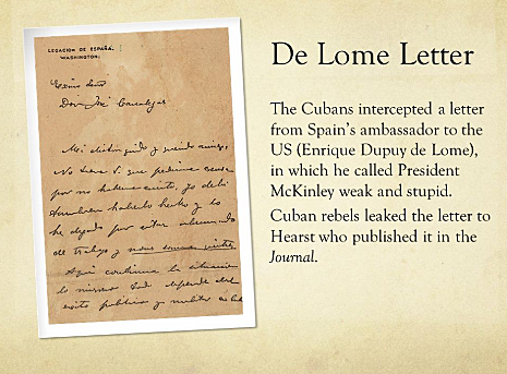 It insulted McKinley and his efforts in Cuba leading to de Lomes hasty resignation. In this lesson you will learn about the letters contents and. Facsimile of Letter Written by the Spanish Minister Publication of the letter helped generate public support for a war with Spain over the issue of independence for the Spanish colony of Cuba.